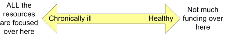 If mental health is a spectrum from ‘healthy’ to ‘chronically ill’, the resources tend to be focused at the chronic end of the spectrum.